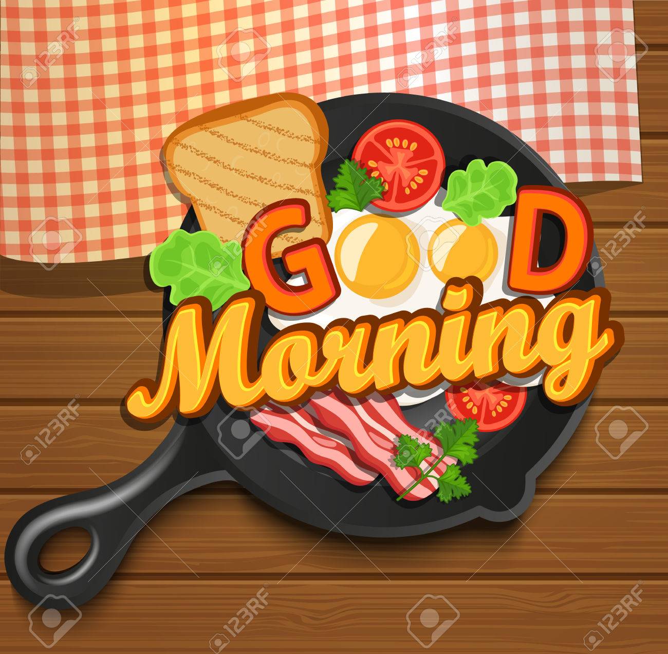 Englisch Fruhstuck Spiegelei Tomaten Speck Und Toast Draufsicht Beschriftung Guten Morgen Vektor Illustration Lizenzfrei Nutzbare Vektorgrafiken Clip Arts Illustrationen Image 60392292