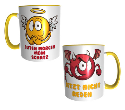 Design Kaffeetasse Mit Bunten Aufdruck Engel Teufel Guten Morgen Mein Schatz Ebay