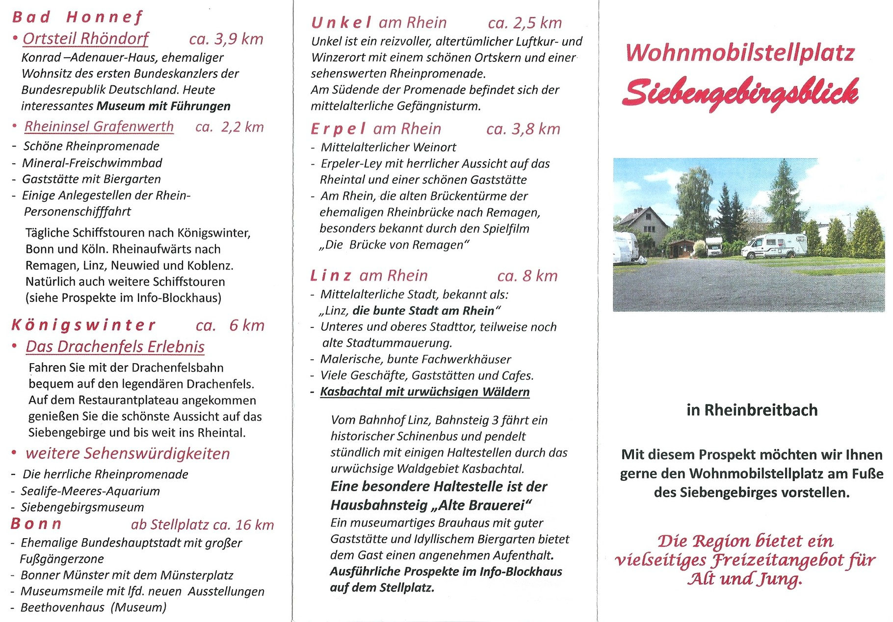 Schoene Spaziergaenge mit schoener Aussicht in der Naehe. In Nideggen und Umgebung finden Sie ideale Bedingungen fuer schoene Wanderungen und anspruchsvolle Radtouren. Strom Frischwasser und Abwasser koennen gegen einen Unkostenbeitrag benuetzt werden.